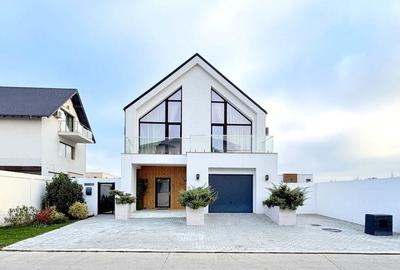 Vilă unică in complexul rezidential Paradisul Verde, cu suprafața construita de 320 mp, amprentă la sol de 138 mp și teren de 572 mp ,împrejmuită cu gard din beton cu înălțimea de 2,40m. Vila are o arhitectură scandinavă cu suprafețe vitrate mari și finisaje de cea mai bună calitate.