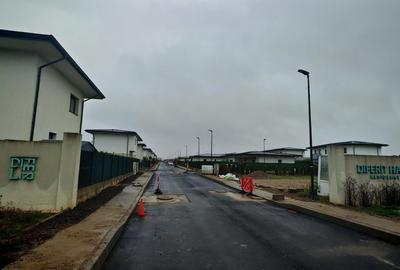 Parter : hol intrare acoperit, o baie cu dus (5.04mp), camera tehnica (7.88mp), bucatarie inchisa (15mp), living cu zona de dining (28mp) cu iesire pe terasa din spate.