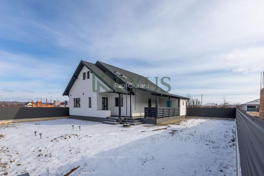 Casa are o suprafață de 105 mp și este amplasată pe un teren de 400 mp.