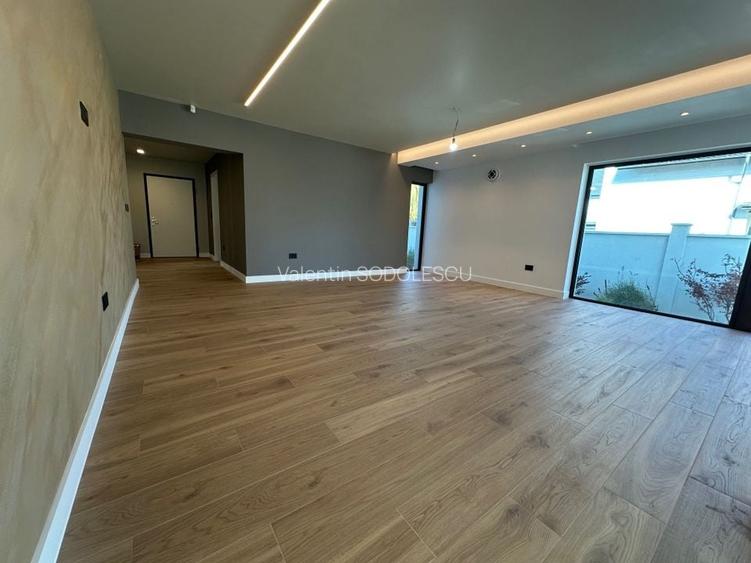 Materiale de finisaj premium, placi ceramice din Italia, parchet triplu stratificat, usi filo muro cat si de sticla, balustrazi de sticla, obiecte sanitare deosebite, baterii lavoar si dus incastrate, panouri, cadite si cada de dus exceptionale, corpuri de iluminat, spoturi, aparataj electric, vopsele lavabile si decorative de la producatori de top.