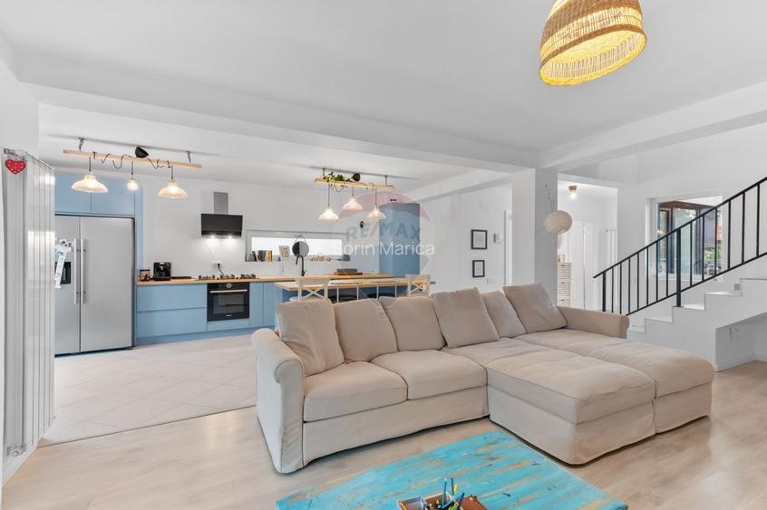 Curtea este amenajată cu gazon și sistem de irigație automatizat prin aspersoare, oferind un spațiu verde mereu îngrijit. Terasa de vară devine locul perfect pentru relaxare și momente petrecute alături de familie și prieteni. În plus, vila beneficiază de un generator puternic de 24 kW, care asigură independență și confort indiferent de situație.