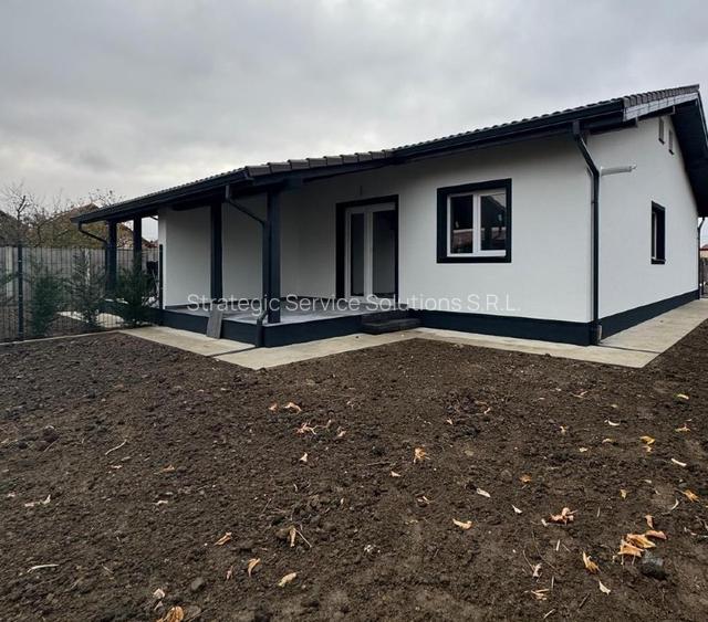 Duplex pe parter de vanzare langa Timisoara, in comuna Sanmihaiu Roman, in vatra satului, constructie pe parter, cu hol, 2 dormitoare, living cu bucatarie deschisa, dar care se poate inchide, baie, pod si terasa cu acces din living.