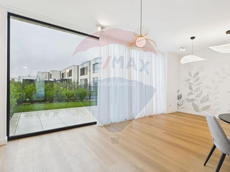 Parterul are un living superb, extrem de luminos si spatios, bucatarie open space, ce se poate inchide, grup sanitar, si zona tehnica unde regasim si pompa de caldura.