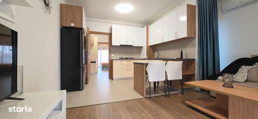 Apartament de inchiriat, str. Mestesugarilor/cart.IosiaGabi Imobiliare va propune spre inchiriere un apartament premium cu doua camere, situat intr-un bloc de exceptie, recent finalizat, mai exact pe str. Mestesugarilor. Locatie excelenta, zona linistita ce ofera confortul si siguranta la cele mai inalte standarde. Blocul ofera o intimitate aparte fiind o constructie pe 3 nivele, in total 9 apartamente adica 3 apartamente pe fiecare nivel, dispune de asemenea de o curte interioara cu locuri de parcare acoperite, intrare in curte cu porti automatizate, ascensor de ultima generatie de 4 persoane.Finisaje sunt de cea mai inalta calitate, incontestabile, executate intr-un stil contemporan definit prin rafinament si eleganta. Constructie de exceptie ce se remarca prin lucrari executate la cel mai inalt nivel calitativ, materialele de asemenea.Apartamentul propus spre inchiriere este situat la etajul 1 al blocului si este dispus pe o suprafata utila totala de 50 mp, suprafata construita 70 mp. Compartimentare optima, bine gandita, spatiul de noapte este clar delimitat de cel de zi, compozitia apartamentului fiind urmatoarea: hol de intrare cu dressing de hol, dormitor matrimonial, bucatarie cu camera de zi si locul pentru luat masa in spatiu deschis, cu acces la balcon, baie dotata cu dus walk in. Apartamentul se ofera spre inchiriere complet mobiliat si utilat, beneficiind de: videointerfon, instalatii electrice, incalzirea in pardoseala, centrala proprie pe gaz, aer conditionat, tamplarie termopan cu 3 foi si 5 canate, balcon placat cu gresie, balustrada din sticla securizata. De mentionat faptul ca incalzirea in pardoseala faciliteaza reducerea costurilor la intretinere! Mobilier de inalta calitate, electrocasnice de asemenea, alese cu mult bun gust, completand armonios designul apartamentului.Amplasat in apropierea centrului comercial Prima Shops, centrul orasului, magazine plus multe alte facilitati si nu in ultimul rand amenajarea armonioasa si calitativa a acestuia il plaseaza ca fiind alegerea ideala pentru viitorii chiriasi!Dispune de loc de parcare acoperit!Pret de inchiriere: 460 euro/luna + garantie.
