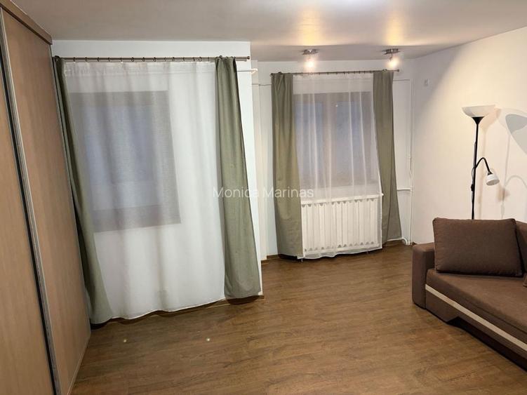 Garsoniera de inchiriat Drumul Sarii: Complet renovata. Pozitionata pe Drumul Sarii in apropierea Starea Civila sector 6, cu vedere in spatele blocului (fara zgomotul drumurilor intens circulate). - 3 minute de mers pe jos pana la statia de metrou Orizont - 4 minute de mers pe jos pana la statia de autobuz (168, 368), troleibuz (69, 96), tramvai (1, 10,11, 25) Razoare (Danny Huwe), metrou Academia Militara - 2 minute pana la statia de autobuz 139 si troleibuz 96 In zona se afla magazine Lidl, Mega Image, gradinita, liceul Ion Barbu, afterschool, cabinete medicale, loc de joaca pt copii. Blocul este dat in folosinta in 1990 si reabilitat termic, terasa are izolatia si invelitorea refecuta anul trecut, scara blocului recent renovata, vecinii sunt linistiti, loc de parcare la liber in spatele blocului. Nu este bloc de garsoniere. Garsoniera este la etajul 4/4, in interior tavanul este izolat, nu sunt probleme cu caldura pe timpul verii sau cu frigul iarna. Suprafata utila 40 mp, dispune de o camera mare cu doua ferestre, canapea extensibila, biblioteca dulap pt haine, hol, bucatarie, baie si balcon cu acces din camera si din bucatarie prin usi de termopan. Dotari: - Plita cu gaz - Cuptor electric - Masina de spalat rufe - Frigider - Aer conditionat - Televizor - Internet Digi Iarna trecuta intretinerea nu a depasit 400 Lei/luna iar caldura nu a lipsit, punctul termic fiind foarte aproape, din aceste motive pe scara blocului sunt doar 3 apartamente care au centrala proprie. Se percepe o chirie de 380 Euro si o garantie de aceiasi valoare. Telefon: 0_7_2_2_3_1_2_2_1_8, 0_7_2_3_1_7_3_9_7_8