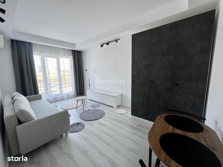 Va oferim spre inchiriere o garsoniera, situata in Ansamblul Rezidential Cosmopolis, suprafata utila 27 mp + balcon, etaj 1/6.Imobilul dispune de living, bucatarie separata complet mobilata si utilata,1 baie, hol, balcon si 1 loc de parcare.Garsoniera se inchiriaza complet mobilata si utilata pe o perioada minima de 12 luni.Pret: 360/luna;Ansamblul Rezidential Cosmopolis va ofera urmatoarele facilitati: Strip Mall (singurul mall dintr-un Ansamblu Rezidential din Romania, unde gasiti Lidl, Carrefour, farmacie, cabinet veterinar, brutarie, restaurant, croitorie, curatatorie, wine shop, cafenea, magazin non-stop, coafor, fast food, magazin cu articole de gradinarit, magazin de papetarie si jucarii, inmedio), piscine exterioare, transport privat (Cosmopolis - Metrou Pipera -Retur) , gradinite si scoala private, parc, paza asigurata de BGS.Unitate promovata de echipa de vanzari a dezvoltatorului.