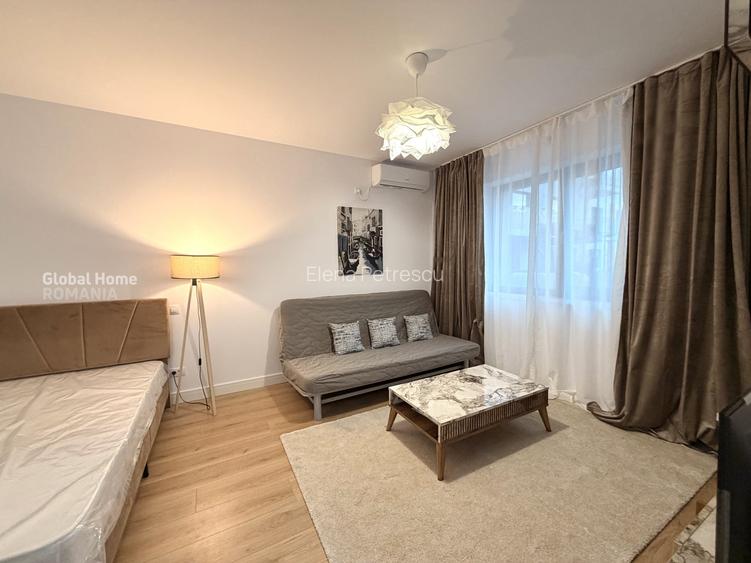 Studiourile este recent mobilat și complet echipat pentru un stil de viață confortabil și modern. Dispune de bucătărie complet utilată, cu frigider, plită și cuptor electric, mașină de spălat vase și hota. Zona de living este spacioasă și luminoasă, cu mobilier modern și detalii de design contemporan.