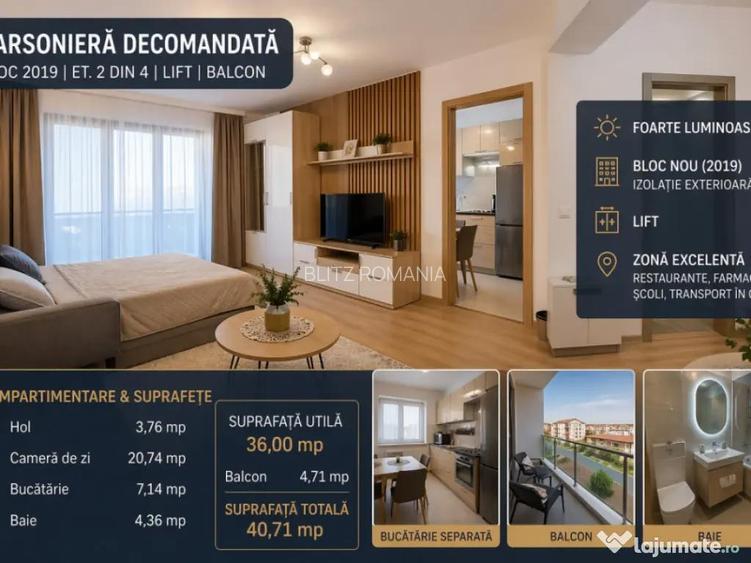 Garsoniera decomandata 40 mp | Bloc 2019 | Lift | Balcon |