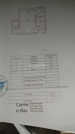 Proprietar Vand garsoniera cf 1, etj.4 in bariera LDL str, G-ral Gheorghe Avramescu nr.4 30500 euro sau cu avans 20 000 euro si restul in rate notariale fara dobanda,(daca nu este agentie CINE CUMPARA se scade 200 euro ptr.a pune parchet sau gresie si retusuri) suprafata utila 23,2 m plus balcon 3,2 mp, supraata totala 26, 4 mp, C.T. inchis cu termopane, aer conditionat, usa metalica. cablu DIGI, detector de gaz, contor gaze,contor electric scos afara in nisa de contoare Este izolat exterior termic 10cm. faianta, gresie, Nu mai sunt probleme cu infiltratiile. Izolatie cu pelicula pe bloc, in garantie. iarna f. calduros, rezistent la cutremur. AN constructie 1980, -200 euro ptr.a pune parchet, gresie si retusuri curatenie AM LASAT DE LA 31000 EURO PTR. RETUSURI La subsol posibilitate boxa tf. ROG SERIOZITATE ! ID anun? : 1687100463