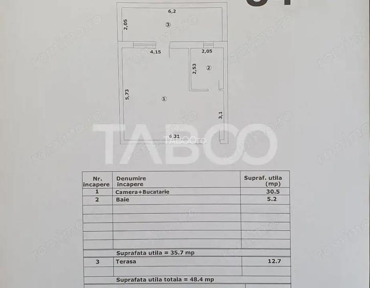 Studio de vanzare , decomandat, 36 mp + terasa de 13 metri, zona Negoiului , Fagaras. TABOO Imobiliare propune un studio de vanzare cu 1 camere, decomandat, situat in localitatea Fagaras, zona Negoiului, aflat la etajul Demisol, intr-un imobil tip bloc cu regim de inaltime pe Demisol+ 6 Etaje; anul constructiei 2025, structura caramida. Suprafata utila de 36 mp + terasa de 13 mp. Este structurat astfel: Camera + Bucatarie; Baie; Terasa; Finisajele interioare sunt moderne: Usa intrare: metal; Usi interioare: lemn; Tamplarie ferestre: pvc, termopan; Pereti: vopsea lavabila, faianta; Podele: parchet, gresie. Utilitati si dotari: Bucatarie: neutilata; Mobilat: nemobilat; Utilitati: curent electric, apa, canalizare, gaz, catv, acces internet, fibra optica; Izolatii: exterior; Contorizare: apometre, contor gaz, contor curent electric; Caracteristici bloc: interfon. Se finalizeaza pana la data de 01.04.2026, totodata oferind oportunitatea de a va alege pe placul dumneavoastra modelul de gresie si parchet pentru finisajele interioare. Se vinde nemobilat si neutilat. Incalzirea se realizeaza prin centrala proprie si incalzire in pardoseala. Se accepta ca si modalitate de plata surse proprii sau credit bancar. Pret: 35.940 + TVA Cod oferta / ID: P23942 Suna-ne acum la