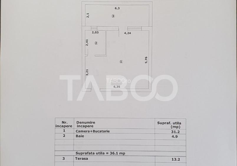 Studio de vanzare, decomandat, 36 mp + terasa 13 mp, zona Negoiului, Fagaras. TABOO Imobiliare propune un studio de vanzare cu 1 camere, decomandat, situat in localitatea Fagaras, zona Negoiului, aflat la etajul Demisol, intr -un imobil tip bloc cu regim de inaltime pe Demisol+ 6 Etaje; anul constructiei 2025, structura caramida. Suprafata utila de 36mp + terasa 13 mp. Studioul este structurat astfel: Camera + Bucatarie; Baie; Finisajele interioare sunt moderne: Usa intrare: metal; Usi interioare: lemn; Tamplarie ferestre: pvc, termopan; Pereti: vopsea lavabila, faianta; Podele: parchet, gresie. Utilitati si dotari: Bucatarie: neutilata; Mobilat: nemobilat; Utilitati: curent electric, apa, canalizare, gaz, catv, acces internet, fibra optica; Izolatii: exterior; Contorizare: apometre, contor gaz, contor curent electric; Caracteristici bloc: interfon. Studioul se finalizeaza pana la data de 01.04.2026, totodata oferind oportunitatea de a va alege pe placul dumneavoastra modelul de gresie si parchet pentru finisajele interioare. Studioul se vinde nemobilat si neutilat. Incalzirea se realizeaza prin centrala proprie si incalzire pardoseala. Se accepta ca si modalitate de plata surse proprii sau credit bancar. Pret: 36.450 + TVA Cod oferta / ID: P23968 Suna-ne acum la