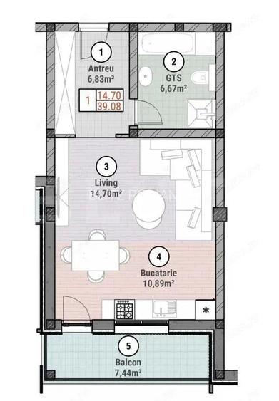 Apartament cu 1 camere 39 mp utili