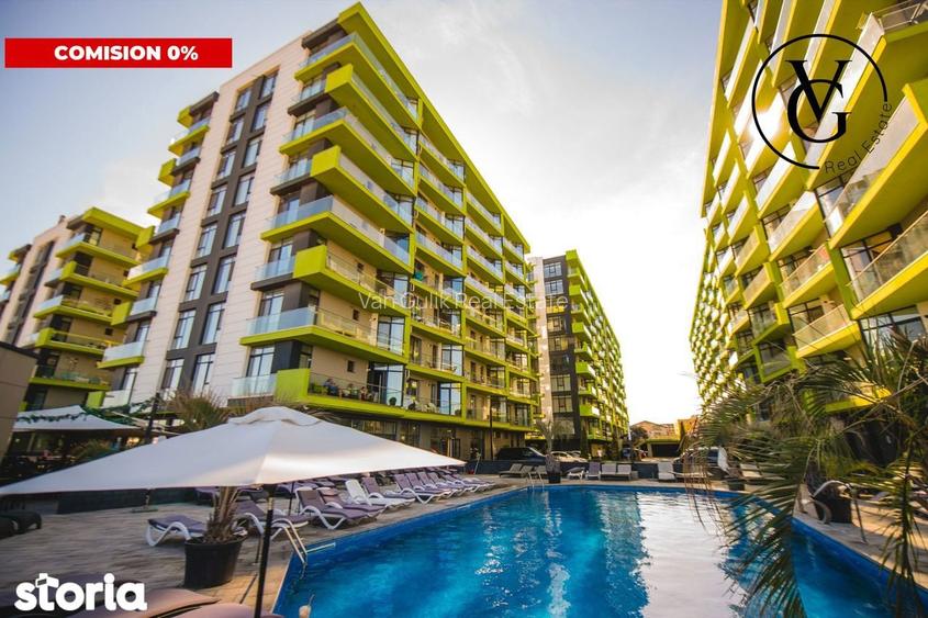 VG Real Estate va propune, spre vanzare cu comision 0% pentru cumparator, un apartament situat in zona Mamaia Nord, in complexul rezidential Alezzi Beach Resort Complexul Alezzi Beach Resort este unul dintre cele mai cunoscute ansambluri rezidentiale de tip resort din zona Mamaia Nord, fiind dezvoltat pentru a oferi atat confortul unei locuinte de vacanta, cat si un produs investitional performant, cu randament ridicat din inchirierea in regim hotelier. Datorita pozitionarii premium si facilitatilor integrate, complexul se bucura de un ROI foarte bun si de un grad de ocupare ridicat in sezonul estival.Informatii generale Tipul apartamentului: 1 camera, tip: decomandat Suprafata utila totala: 34.6 Utila: 31.4 m2; Construita: 48.31 m2. Etajul: 1/8 Anul constructiei: 2016 Tipul cladirii: bloc nou, material de constructie: beton.Detalii specifice: Compartimentare: bucatarie, living, dormitoare, bai, holuri, balcoane/logii Dotari si finisaje: parchet, gresie, faianta, tamplarie PVC, aer conditionat, centrala termica, etc. Se preda mobilat. Electrocasnice sunt incluse. Utilitati: apa, gaz, curent electric, canalizare, internet/cablu TV, incalzire centralaAlezzi Beach Resort este asezat direct pe promenada pietonala, la doar cativa metri de nisip, oferind acces imediat la plaja si la zonele de relaxare de pe litoral. In imediata apropiere se regasesc restaurante cu specific grecesc, italian si pescaresc, beach baruri, centre de sporturi nautice si zone amenajate pentru jogging de-a lungul falezei, ceea ce contribuie la un stil de viata activ si atractiv pentru turisti.Localizarea permite acces rapid catre principalele puncte de interes din zona, inclusiv catre cluburile exclusiviste precum:Nuba Beach Club, Fratelli Beach & Club sau Loft Mamaia, aflate la aproximativ 510 minute de mers cu