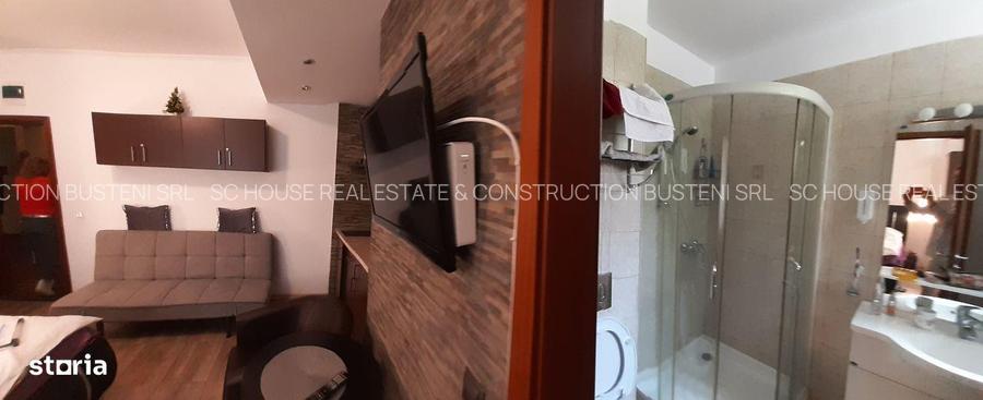 Garsoniera ,zona partia Clabucet ,imobil const 2011 ,peretii din caramida,acoperitoare tabla ,pavaje acces,loc de parcare,lift,interfon,regim de inaltime D+P+2E+M,administratie,suprafata construita 42 mp ,compus din living cu bucatarie open space ,baie.Finisaje Gresie si faianta,zugraveli lavabile,parchet ,usi interioare si intrare de calitate ,tamplarie pvc cu geam termopan ,prize cablu tv si telefon ,instalatie electrica de prize si iluminat ,instalatii sanitare complet echipate ,spatiu de loaca,sauna,sala fitness,piscina la subsol ,acces usor,vecinatati case si vile de vacanta,panorama muntii Bucegi si partia Clabucet,amplasament special si deosebit ,finisaje -lux, situata la parter, se poate vinde mobilata si utilata complet ,renovarea recenta si mobilierul fiind noi.