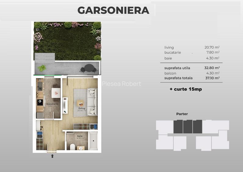 OCAZIE Garsoniera decomandata cu curte la doar 950 m Metrou Aparatori