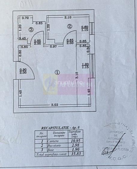 Garsoniera de vanzare in Campina, et. 1 15,83 mp