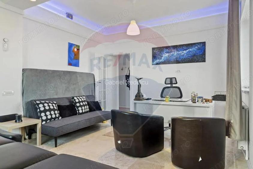 Studio de lux ultracentral Pia?a Romana nr. 9 | Elegan?a, istorie ?i confort contemporan Situat chiar in inima Bucure?tiului, la Pia?a Romana nr. 9, acest apartament unic a fost reconfigurat din doua camere intr-un studio de lux, oferind un spa?iu spectaculos, cu personalitate ?i valoare istorica autentica. Proprietatea a fost renovata integral la standarde premium in 2022, folosindu-se materiale de cea mai buna calitate. Finisajele din travertin de lux, instala?iile electrice ?i sanitare in totalitate din cupru, precum ?i ferestrele tripan cu aer dublu ?i invertor asigura un confort fonic ?i termic excelent, rar intalnit intr-o cladire istorica din centrul ora?ului. Cu un tavan impresionant de 4 metri, spa?iul ofera senza?ia de loft urban, aerisit ?i luminos. Apartamentul este complet mobilat ?i utilat, gata pentru locuire imediata sau pentru o investi?ie premium (reziden?ial sau corporate). Se afla la etajul 9 din 9, un avantaj major prin intimitate ?i lumina naturala, iar terasa blocului a fost refacuta complet in 2024, eliminand orice grija legata de acoperi?. Imobilul beneficiaza de centrala de scara, iar scara blocului este recent renovata ?i zugravita, oferind un acces civilizat ?i ingrijit. Cladirea este incadrata in clasa de risc seismic 1, aspect important ce trebuie cunoscut ?i asumat, insa care nu diminueaza valoarea arhitecturala, pozi?ia excep?ionala ?i unicitatea proprieta?ii. Un detaliu cu adevarat special: aici a locuit Josephine Sternfeld Grefu, prima balerina a Operei Romane un element de insemnatate istorica ?i culturala ce confera apartamentului un caracter aparte ?i o poveste autentica. Loca?ie excep?ionala Istorie ?i prestigiu Renovare de lux, spa?iu spectaculos Aceasta proprietate este o oportunitate rara, ideala pentru cei care cauta un apartament diferit, cu identitate, pozi?ie ultracentrala ?i valoare pe termen lung. O astfel de oferta nu trebuie ratata. ID anun? : 1768273845