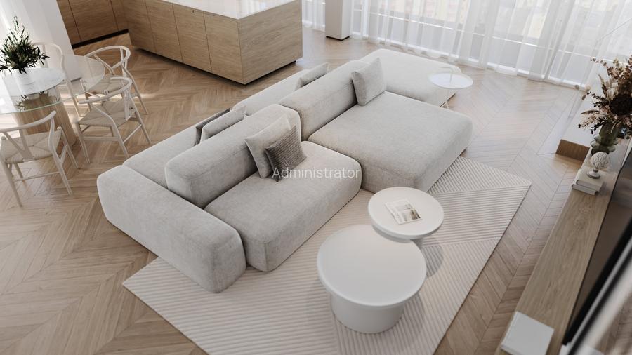 Finisajele de top – parchet cu finisaj din lemn natural, gresie și faianță premium, detalii moderne și lumină naturală abundentă – confirmă semnătura Cosmopolit, brand recunoscut pentru calitate și design rafinat.