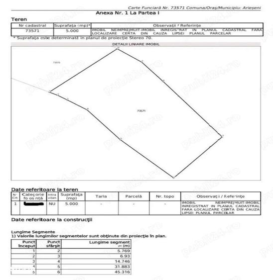Suprafata: 5.000 mp.Pret mp: 15 Euro mp negociabil.Localizare: 2 km de statiunea turistica Vartop, com. Arieseni.Accesul pana la teren se efectueaza pe un drum forestier pietruit (preferabil 4x4).Distanta dintre statiunea turistica Vartop si terenul propriu-zis este de 2 km.Dispune de urmatoarele utilitati: curent, apa si semnal in toate retelele mobile.*Terenul este intabulat!*Nu exista posibilitatea achizitionarii unei sprafete mai mici, se vinde intreaga suprafata de 0.5 ha.Obiective turistice in apropiere: Partia Vartop 1 (2 km), Partia Vartop 2 (2 km), Partia Piatra Graitoare (2,5 km), Avenul Hoanca Urzicarilor (2 km), Groapa Ruginoasa (5 km), Biserica Sf. Ioan Botezatorul din Arieseni (10 km), Cascada Varciorog (13 km), Cascada Patrahaitesti Arieseni (15 km), s.a..Nu accept schimburi!Nu raspund la mesaje, am rugamintea sa ma contactati telefonic!Nu colaborez cu agentii imobiliare!