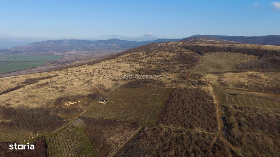 Se ofera spre vanzare teren viticol situat pe un deal in localitatea Covasant, cu o suprafata totala de 6.800 mp. Proprietatea este ingradita integral cu gard electric si beneficiaza de o pozitionare excelenta, la 200 m altitudine si la aproximativ 400 m de drumul betonat. Pe teren este plantata vita-de-vie nobila, cu butasi categoria I, dispusa pe doua pante, avand urmatoarele soiuri: Cadarca Cabernet Sauvignon Pinot Noir Merlot Productia anuala este cuprinsa intre 5.500 8.500 kg de struguri, in functie de conditiile climatice. Extra echipamente disponibile la vanzare separat: 9 tancuri din inox (capacitati de 300 l, 500 l si 600 l) Dez-ciorchinator profesional Presa de struguri Cazi de 600 l Pompa pentru transfer must Proprietatea este ideala pentru pasionati de viticultura sau pentru dezvoltarea unei mici afaceri in domeniul vinificatiei. Pentru mai multe detalii si vizionari: Szekeres Carol Consultant imobiliar, Property Lab Telefon: (folosesti formularul de contact) Email:
