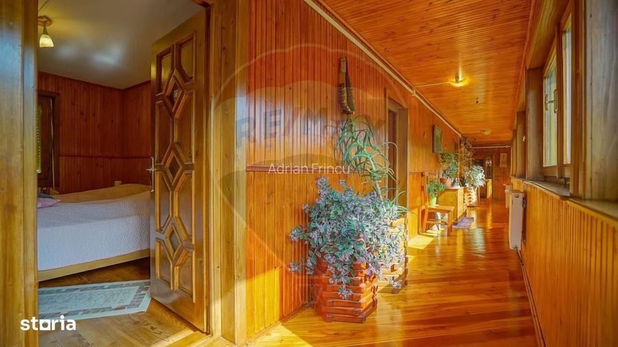 Agentia imobiliara REMAX Evolution va prezinta spre inchiriere, in regim de reprezentare exclusiva, cu comision 0 % din partea chiriasului: Pensiunea Raw Nature, amplasat pe DN103A in comuna Dalghiu jud Brasov, in apropiere de Valea Zimbrilor, la 8 km de Vama Buzaului si 54 km de Brasov. Proprietatea se gaseste pe un domeniu de 6 Ha, intr-un loc linistit, la poalele muntilor Ciucas, ideala pentru iubitorii de natura sau pentru cei care cauta intimitate, departe de freamatul orasului. La Raw Nature veti gasi o curte imensa cu raul care trece prin fata cabanei si cu drumuri prin padure care asteapta sa fie descoperite. Optional, se pot organiza mese festive de Pasti si de Craciun, plimbari cu caruta, echitatie si plimbari calare, fotografie in tarc de vanatoare, drumetii pe Valea Zimbrilor sau la cascada Urlatoarea. Proprietatea are 6 dormitoare, 6 bai, living cu bucatarie complet utilata, 14 locuri de cazare, foisor cu gratar si loc de luat masa. Alimentarea cu energie se face din resurse regenerabile, respectiv panouri solare, turbina eoliana, turbina hidraulica. Practic, se vinde un business la cheie, care ii va genera venituri noului proprietar, imediat dupa transferul de proprietate, mai ales ca nu sunt costuri de intretinere. Clasa energetica: A Consum anual specific de energie: 147,87 kWh/m2an Indice de emisii echivalent CO2: 2,25 kgCO2/m2an Consum anual specific de energie din resurse regenerabile: 64,15 Kwh/m2an Pentru mai multe detalii, va stam la dispozitie. The real estate agency REMAX Evolution presents for sell, in exclusive representation, with 0% commission from the buyer: Raw Nature tourist resort, located on DN103A in Dalghiu, Brasov county, near the Valley of the bison, 8 km from Valea Buzaului and 54 km from Brasov. The property is located on an area of 8 Ha, in a quiet place, at the foot of the Ciucas mountains, ideal for nature lovers or for those looking for privacy, away from the hustle and bustle of the city. At Raw Nature you will find a huge yard with the river that passes in front of the cottage and with roads through the forest waiting to be discovered. Optionally, you can organize festive Easter and Christmas meals, cart rides, horseback riding and horseback riding, photography in a hunting enclosure, hikes on the Bison Valley or at the Urlatoarea waterfall. The property has 6 bedrooms, 4 bathrooms, living room with fully equipped kitchen, 14 beds, gazebo with barbecue and dining area. The energy supply is made from renewable resources, respectively solar panels, wind turbine, hydraulic turbine. Basically, a turnkey business for sale, which will generate income for the new owner, immediately after the transfer of ownership, especially since there are no maintenance costs. For more details, we are at your disposal.