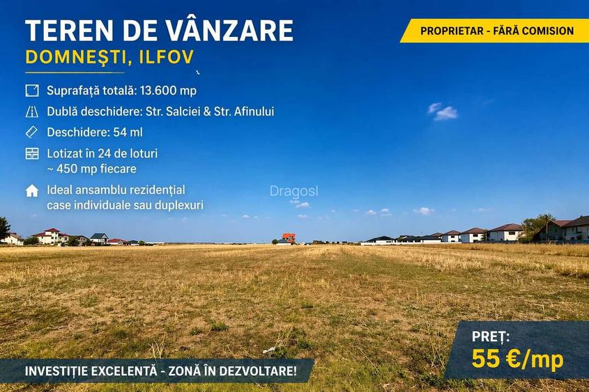 Particular - Domnesti Ilfov teren 13.600 mp lotizat in 24 loturi,55 euro mp