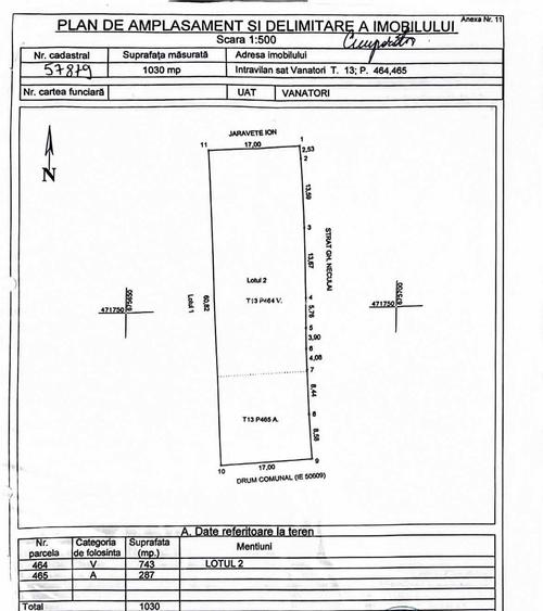 Teren Intravilan | 1030 mp | 50/mp | Central Vanatori Focsani Vrancea
