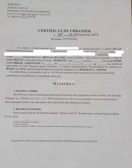 Teren Intravilan 5000mp, Moinesti, Str. M. Sadoveanu