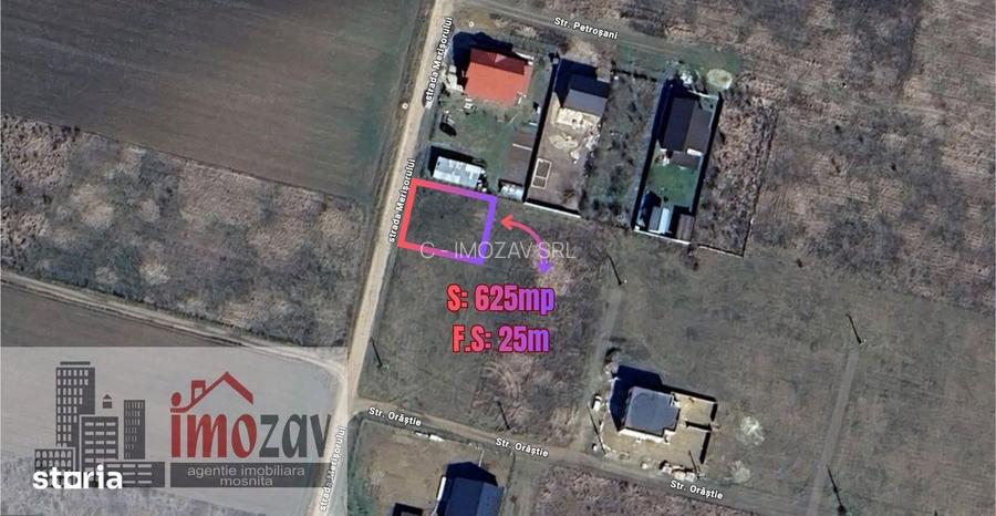 Suprafata: 625 mp Front stradal: 25 m Pret: 53.000 DESCRIEREImoZav va ofera spre vanzare o parcela de teren situata pe Strada Merisorului, in Mosnita Veche. Terenul beneficiaza de un front stradal generos, fiind potrivit pentru constructia unei locuinte individuale sau pentru investitie, intr-o zona aflata in dezvoltare constanta.Pozitionarea ofera un echilibru foarte bun intre linistea zonei rezidentiale si accesul facil catre puncte importante din Mosnita Veche si Mosnita Noua. UTILITATI Curent electric Apa Canalizare Gaz la aproximativ 180200 m FACILITATI Aproape de Centura Timisoara si Drumul Boilor 7 min cu masina pana la DHP Gym, StudioFit Pilates si centru medical 6 min cu masina pana la Lidl Drumul Boilor 6 min cu masina pana la Parc Cartierul Regiunilor 7 min cu masina pana la gradinita 8 min cu masina pana la afterschool 4 min cu masina pana la Parc Tineret Mosnita Veche 2 min cu masina pana la salon de infrumusetare 4 min cu masina pana la complex comercial Mosnita Veche (Carrefour, Pulcinella) 7 min cu masina pana in Mosnita NouaContacteaza-ne pentru detalii sau vizionare!