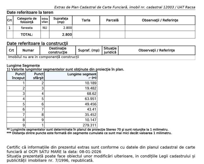 Teren 2800 mp - zona Bentonita, aproape de satul Mujdeni si localitatea Orasu Nou. Terenul se poate parcela in 3 loturi pentru case (aprox. 900 mp fiecare) ideal pentru investitie. Pret bun pentru investitie, in zona exista terenuri introduse in intravilan