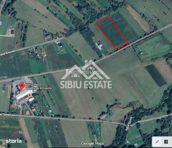 Oportunitate de investitie ! Teren de vanzare in Zona Padurea Dumbrava Teren cu potential aflat in proximitatea Versailles Events, in mijlocul naturii, intr-o zona cu potential de dezvoltare. Terenul cu suprafata de 8.600 mp. este incadrat ca teren agricol extravilan cu deschiderea de 52 m, lungimea de 166 m , are forma dreptunghiulara perfecta, si posibiliate de dezmembrare in parcele mai mici. Sibiu Estate- Casa ta, povestea noastra!