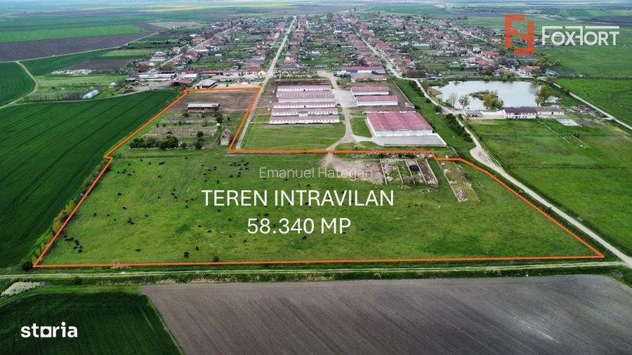 Teren intravilan pretabil constructii industriale de vanzare in Sanmartinu Sarbesc. FOXFORT propune teren intravilan pretabil constructii industriale de vanzare in Sanmartinu Sarbesc, zona Fermei, avand o suprafata de 58.340 mp, numar fronturi 3 si deschiderea de 130 ml la strada. Utilitati: curent electric. Pretul este de 229.990 - COMISION 0%. Se accepta ca si modalitate de plata surse proprii sau credit bancar. ID intern: V9717