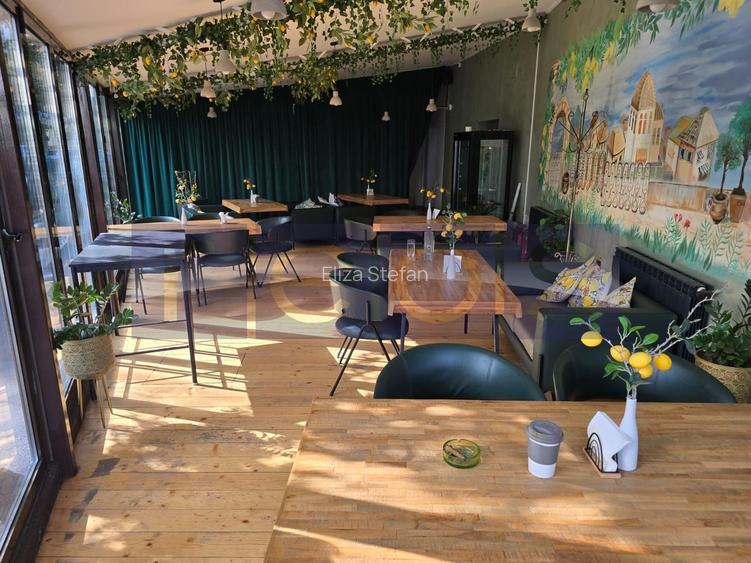 Spațiul a fost recent renovat complet (interior și exterior) și a funcționat anterior ca și cofetărie cu laborator propriu, beneficiind de infrastructură completă pentru acest tip de activitate. La cerere, se pot achiziționa utilaje, echipamente și mobilier de la fostul chiriaș.