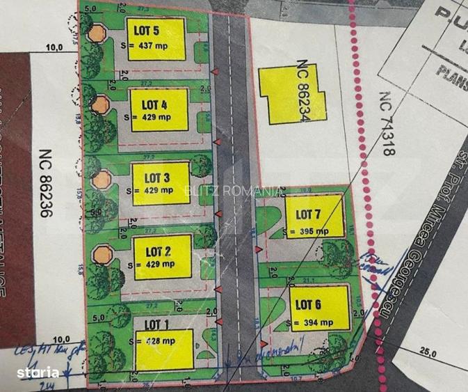 Blitz va ofera spre vanzare un ansamblu de 7 loturi intravilane, cu PUZ aprobat si Certificat de Urbanism actualizat, situate intr-o zona aflata in plina dezvoltare, ideala pentru constructii rezidentiale moderne sau investitii imobiliare sigure pe termen lung. Suprafetele sunt distribuite astfel: 429 mp 429 mp 429 mp 429 mp 398 mp 394 mp Loturile se pot achizitiona individual sau in bloc, in functie de preferinte, fiind amplasate intr-un cartier privat, cu infrastructura in curs de dezvoltare si acces auto facil. Utilitatile (apa, curent, gaze, canalizare) sunt chiar in fata terenului, ceea ce reduce semnificativ costurile de conectare. Drum privat, acces usor, zona linistita, potrivita pentru locuinte individuale, duplexuri sau ansamblu rezidential. Avantaje: PUZ aprobat constructie fara obstacole administrative Certificat de Urbanism actualizat Fronturi generoase Zona in plina extindere Drum privat Investitie cu potential ridicat Destinatii potrivite: locuinte individuale case tip duplex ansamblu de case dezvoltare imobiliara O oportunitate excelenta atat pentru dezvoltatori, cat si pentru persoane fizice care doresc sa construiasca intr-o zona aerisita, moderna, cu vecinatati noi. Cod oferta / ID BLITZ: P159762
