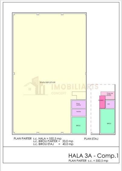 Imobiliaris Concept va prezinta spre vanzare, hale industriale si spatii de depozitare. Va oferim oportunitatea de a achizitiona hale industriale moderne si spatii de depozitare, amplasate strategic pentru afacerea dumneavoastra. Aceste proprietati sunt ideale pentru activitati industriale, logistice sau de depozitare, beneficiind de facilitati complete si de acces facil la rute de transport. SPECIFICATII: - Suprafata teren: 11.451 mp - Suprafata totala: 6.470 mp - Suprafete hale disponibilie: 288 mp, 296.40 mp, 360 mp, 367 mp, 384 mp, 400 mp, 407 mp, 435 mp, 475 mp, 550.50 mp, 590.5 mp, 1087 mp, 1207 mp, 1971 mp, 1936.80 mp, 2131 mp - Sistem de acces: fiecare hala are 2 sau mai multe usi industriale - Spatiul se va preda finisat cu sau fara birouri, la cererea clientului - Hala la predare va fi insotita de autorizatie ISU - Parcare: locuri de parcare pentru angajati si vehicule comerciale - Accesibilitate: situata in apropierea drumurilor principale, acces rapid la legaturi de transport AVANTAJE: - Infrastructura excelenta pentru transport si distributie - Spatii flexibile, adaptabile nevoilor specifice ale afacerii dumneavoastra - Ideal pentru productie, depozitare sau logistica LOCATIE: - Proprietatea se afla intr-o zona industriala dezvoltata, cu acces facil pentru camioane si transporturi grele. - In apropiere se gasesc statii de transport public, facilitand accesul angajatilor. PRETURI incepand de la 760 EUR mp. Consultant Imobiliar ANDRADA LES Pentru mai multe detalii si programarea unei vizionari, va rugam sa ne contactati la numarul de telefon