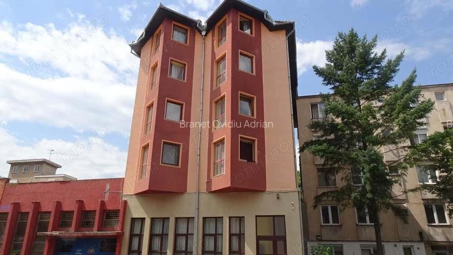 Vand cladire P+4E in Deva, zona Dacia, constructie din anul 2016 din caramida izolata exterior, acoperita cu pod si tigla, teren proprietate, amprenta la sol de 169 mp, suprafata construita 843,78 mp, suprafata utila 671,75 mp, incalzire cu centrala termica electrica, tamplarie PVC cu geam termopan, gresie, faianta, parchet, amenajata, mobilata si utilata integral. Parterul este compus din restaurant cu: sala de servire, acces la casa scarii, 2 grupuri sanitare, vestiar, 2 holuri si 2 bucatarii. Fiecare etaj este compus din: 4 garsoniere, hol si un vestiar. Cladirea dispune si de cateva locuri de parcare concesionate. Este pretabila pentru pensiune, hotel sau birouri. Pret: 850 000 euro neg. Tel: