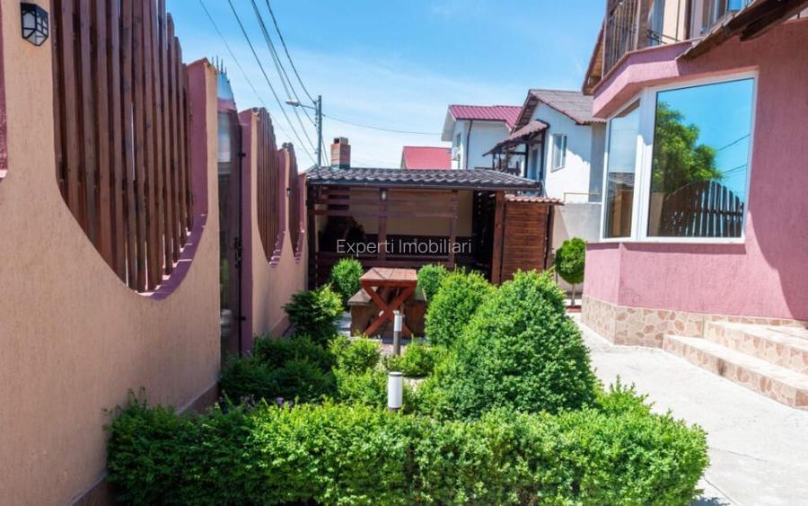 ????Agentia Experti Imobiliari va ofera spre achizitie o vilapensiune moderna de vanzare in Eforie Nord, ideala pentru investitie turistica, situata in cartier nou de case, pe strada asfaltata si linistita, cu deschidere la doua strazi si acces rapid catre plaja si principalele puncte de interes. Proprietatea este libera de sarcini, cu documentatie completa, fiind eligibila pentru credit bancar. ????Imobilul, are o suprafata construita desfasurata de 297 mp si este amplasat pe un teren de 300 mp, fiind compartimentat optim pentru activitate turistica pe tot parcursul sezonului. Pensiunea dispune de 8 camere spatioase, respectiv 4 camere duble si 4 camere triple, distribuite echilibrat pe fiecare nivel, cu holuri largi si luminoase ce asigura un flux excelent al circulatiei. Proprietatea include o bucatarie complet utilata de 12 mp, un foisor de 16 mp echipat cu gratar, aragaz si lavoar, precum si o anexa separata ce cuprinde baie proprie, zona de spalatorie si spatiu tehnic cu centrala. In plus, vila beneficiaza de un beci de 20 mp cu rafturi si zona tehnica pentru boiler si automatizari, precum si de un pod circulabil de 20 mp, realizat pe structura de lemn si dotat cu sistem de sprinklere pentru protectie. ????Din punct de vedere tehnic, vila este complet echipata cu toate utilitatile: apa, canalizare, electricitate si gaz. Sistemul de incalzire este dual, format din centrala pe gaz de 35 kW si centrala electrica de backup, asigurand eficienta si siguranta. Aportul de apa calda este sustinut de un boiler de 300 litri, precum si de un boiler suplimentar de 200 litri conectat la panouri solare, cu rezistenta electrica de 2,5 kW, complet automatizat si controlabil de la distanta prin telefon. ????Proprietatea dispune de sistem fotovoltaic de 3 kW (prosumator) cu invertor, contribuind la reducerea costurilor de operare, precum si de put forat la 30 m adancime, ideal pentru irigarea gradinii si consum secundar. Accesul se face prin porti metalice automate, cu control prin telecomanda si aplicatie mobila, iar pentru mobilitate moderna exista priza industriala monofazata pentru incarcarea masinilor electrice. Siguranta este asigurata printr-un sistem complet de securitate, ce include 8 camere de supraveghere video cu audio si sistem de alarma. Toate spatiile sunt foarte bine intretinute, functionale si gandite pentru confort, eficienta energetica si exploatare turistica imediata. ????Aceasta vila-pensiune in Eforie Nord reprezinta o oportunitate excelenta de investitie, potrivita atat pentru continuarea activitatii turistice, cat si pentru dezvoltare ulterioara, intr-o zona cu cerere ridicata si potential crescut de rentabilitate. E.9(P32583) Id intern: P32583 Stadiu constructie: Finalizat Numar incaperi: 8 Publicat prin