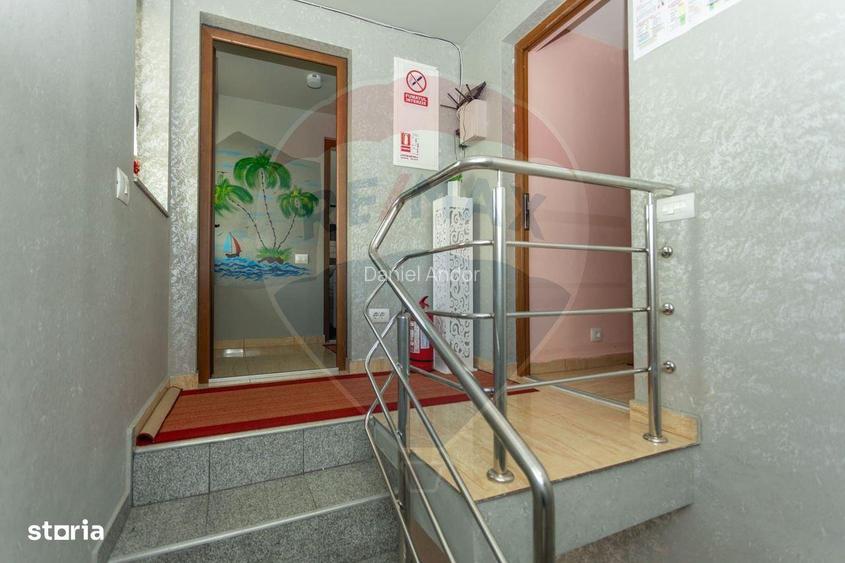 Va propun spre vanzare, cu 0% comision pentru cumparator, o proprietate cu potential investitional excelent, situata in Satu Nou de Jos, Strada Republicii, la doar 2 minute de municipiul Baia Mare. Proprietatea este amplasata pe un teren de 959 mp si cuprinde o pensiune clasificata la 3 stele, o casa de locuit separata si o zona de barbeque, fiind ideala pentru continuarea activitatii turistice sau pentru o afacere de tip HoReCa, combinata cu locuinta proprie. Pensiunea este construita in anul 2011, are regim de inaltime P+M si o suprafata construita de 234 mp, fiind compartimentata functional astfel: Compartimentare pensiune: 5 camere duble, fiecare cu baie proprie 1 camera tripla, dotata cu baie privata 2 dintre camerele duble dispun de balcoane Restaurant & zona de servire: Restaurant cu capacitate de pana la 25 de persoane Pizzerie complet echipata si mobilata Bar functional, ideal pentru servire si evenimente restranse Pe langa pensiune, proprietatea include si o casa de locuit, perfecta pentru administratori sau proprietari, compartimentata astfel: Dormitor Living Bucatarie Baie Caracteristici si utilitati: Teren generos de 959 mp Zona de barbeque amenajata Racord complet la toate utilitatile: apa, gaz, curent, canalizare Acces facil si vizibilitate buna, ideala pentru activitate turistica Aceasta proprietate reprezinta o oportunitate excelenta de investitie, cu activitate ce poate fi continuata imediat, dar si o solutie practica pentru cei care doresc sa imbine afacerea cu locuinta personala, aproape de Baia Mare. Pentru detalii suplimentare si programari pentru vizionare, nu ezitati sa ma contactati.