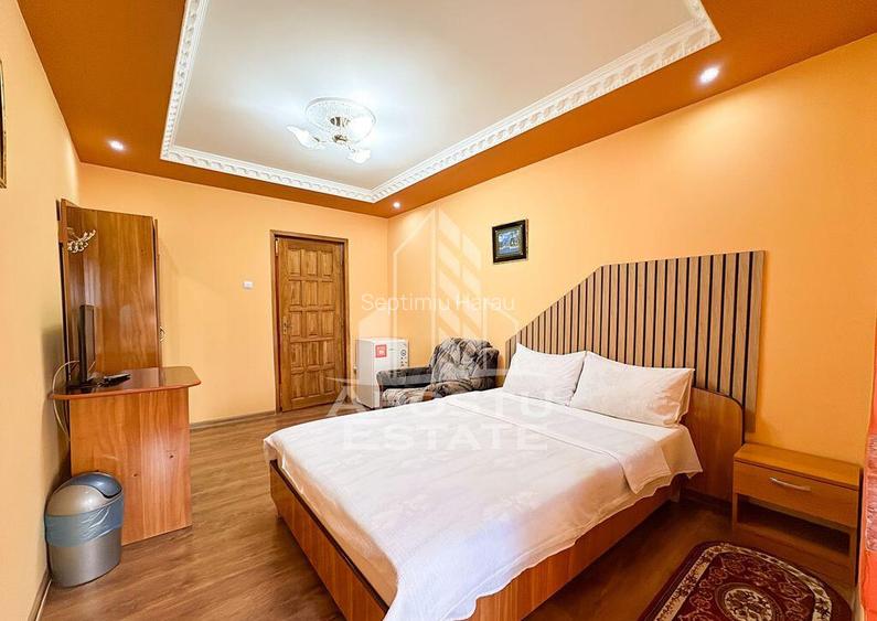 APOSTU ESTATE va propune spre vanzare o oportunitate unica de investitie in Hunedoara, un oras cu o istorie bogata, beneficiind de Castelul Corvinilor, desemnat Destinatia Anului 2025. La Vila Pensiunea - Restaurant Maria, o afacere de familie cu traditie din 1993, este disponibila pentru vanzare la cheie, impreuna cu firma. Firma care detine La Vila Pensiunea - Restaurant Maria a fost infiintata in 1993, reprezentand un pilon al ospitalitatii in Hunedoara de peste trei decenii. Aceasta longevitate este o dovada a administrarii sale constante si eficiente, adaptandu-se cu succes la schimbarile din piata si mentinand standarde inalte de calitate. O locatie perfecta pentru evenimente si relaxare. Construita in 1996, pensiunea ofera o capacitate de cazare de 14 persoane in 7 camere duble, din care 5 cu bai proprii, fiecare amenajata cu bun gust si dotata cu toate facilitatile necesare pentru un sejur confortabil. Fiecare camera este dotata acu aer conditionat. Exista posibilitatea extinderii afacerii, prin amenajarea a inca minim 4 dormitoare, in mansarda imobilului. Cele doua restaurante spatioase, cu o capacitate de 90 de locuri, respectiv 70, sunt ideale pentru organizarea de evenimente memorabile, de la nunti si botezuri, pana la petreceri private sau corporate si aniversari. Bucataria, complet functionala si echipata, este pregatita pentru orice provocare culinara, iar spatiile de depozitare generoase de la subsol, inclusiv camera frigorifica, asigura eficienta necesara unei activitati de succes. O afacere la cheie, cu potential de dezvoltare: Imobilul se afla intr-o stare excelenta, necesitand doar mici modernizari, si beneficiaza de o locatie consacrata in randul hunedorenilor. Afacerea este vanduta la cheie. Hunedoara, un oras cu o istorie fascinanta: Hunedoara este un oras cu o istorie fascinanta, dominat de impunatorul Castel al Corvinilor, un simbol al arhitecturii gotice transilvanene. In apropiere se afla si alte atractii turistice, precum Parcul National Retezat, Manastirea Prislop, Cetatea Devei, Regia Sarmisegetuza si multe alte locuri care atrag anual mii de vizitatori. O oportunitate unica de investitie: La Vila Pensiunea - Restaurant Maria, este o oportunitate unica de investitie pentru cei care doresc sa detina o afacere de succes in domeniul ospitalitatii, intr-un oras cu un potential turistic in crestere. Caracteristici esentiale: * Firma infiintata in 1993, constant administrata si crescuta corect si cu succes * Cladire edificata in 1996 * 7 camere duble, capacitate de cazare 14 persoane * 2 restaurante, cu o capacitate de 90 de locuri fiecare, respectiv 70 * Locatie consacrata in Hunedoara * Aproape de Castelul Corvinilor si alte atractii turistice Va invitam sa ne contactati pentru mai multe informatii si pentru a programa o vizionare. ID intern: CP2816475 Suprafata totala: 600 m2 An finalizare constructie: 1996 Vitrina: 1.0 m Stadiu constructie: Finalizat Numar incaperi: 7 Numar Grupuri Sanitare: 5 Posibilitate parcare: Da Nr. locuri parcare: 5-10 Tip imobil: Casa/Vila Publicat prin