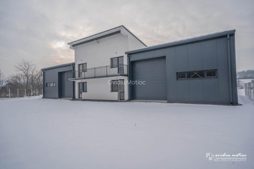 Cei 480 mp sunt distribuiti intre doua module hala si corp birouri.