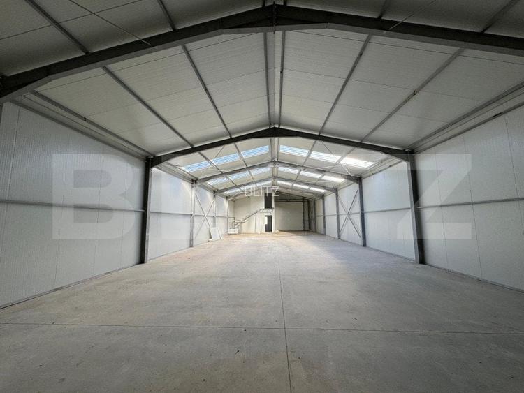 Hala recent edificata a fost realizata la standarde europene si dispune de o zona de receptie la intrare cu spatiu pentru birou deasupra, usa sectionala mare, luminatoare in tavan, putand fi compartimentata in functie de nevoile viitorului proprietar. Ca utilitati beneficiaza de curent electric trifazic, apa, sistem de supraveghere cu camere video.