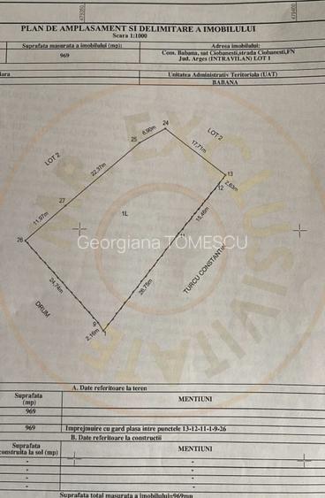 Va prezentam spre achizitie acest teren minunat situat la aprox. 10 km de Pitesti, in comuna Babana, sat Slatioarele, perfect pentru construirea unei case. Terenul are suprafata de 969 mp cu deschidere de 24,74 m, utilitati: apa, curent electric, statie de autobuz, scoala in proximitate. Este o zona de deal superba, in continua dezvoltare iar acest teren este oportunitatea perfecta pentru casa ta de vis! Suna chiar acum pentru a programa o vizionare! Totul cu 0% COMISION pentru cumparator!