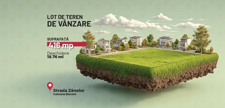 Va propunem spre vanzare un teren intravilan cu suprafata de 416 mp si deschidere de 18.76 m, situat in Comuna Berceni– Strada Zanelor