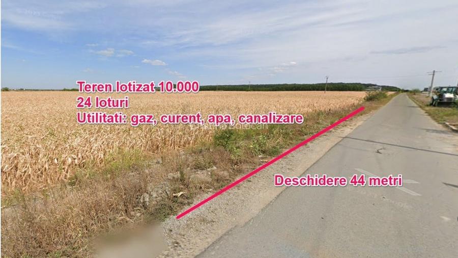 Avand o deschidere de 44 metri, terenul este dezmembrat in 24 de loturi, cu certificat de urbanism valabile.