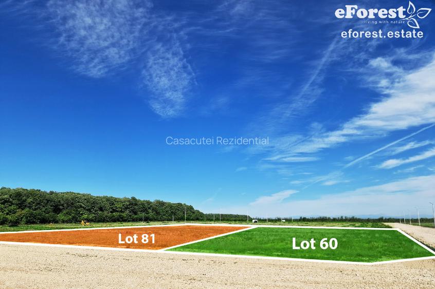 Loturile sunt așezate într-o zonă verde, retrasă, între două masive de pădure, ceea ce înseamnă liniște, aer curat și umbră naturală în zilele de vară. E o zonă care deja prinde contur rezidențial, nu e doar “plan pe hârtie”.