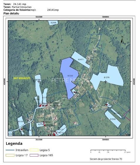 In comuna Mihaesti, sat Draghici, jud. Arges, la 1,5 ore de Bucuresti, aproximativ 40 km distanta de Pitesti si 15 km de Campulung, intr-o zona linistita, cu priveliste frumoasa, vand teren cu suprafata de 24.141,00 mp compus din 2.760,00 mp intravilan si 21.382,00 mp extravilan. Terenul este compus din 3 terase (prima cuprinzand tot terenul intravilan) si are o deschidere de 46 ml la drumul comunal, ideal pentru constructie de casa. Utilitatile sunt la poarta terenului: apa curenta, curent electric si conducta gaze naturale, chiar la limita proprietatii.