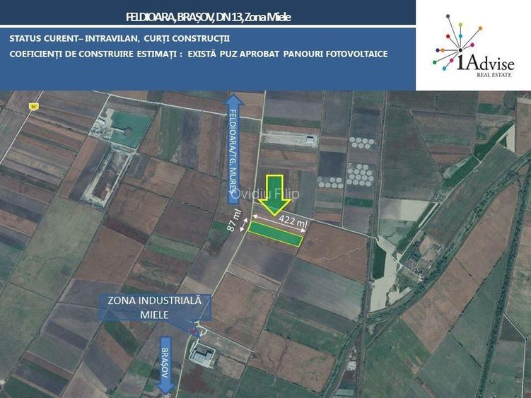 iAdvise vă propune spre vânzare un teren situat pe DN13, în zona industrială limitrofă municipiului Brașov, , dar aparținând teritorial de Feldioara, având in apropiere companii ca Miele, Olympus sau Reinert.
