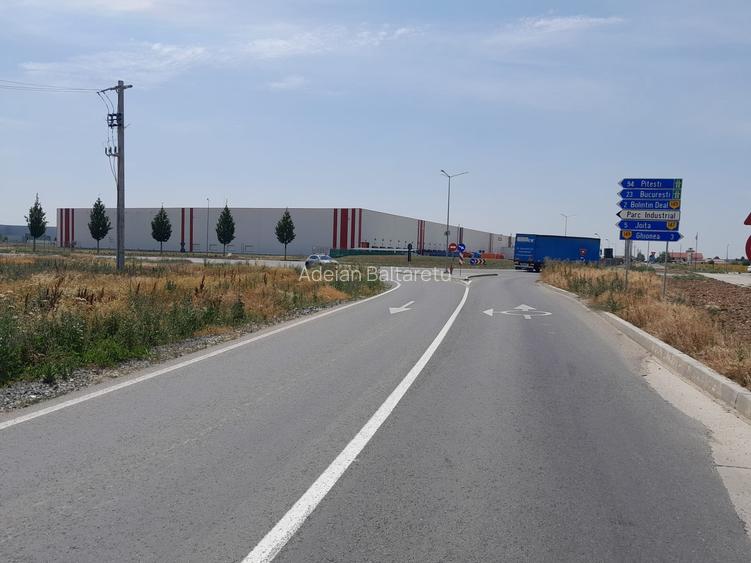 RODOS INVEST , companie imobiliara , va propune pentru investitie , un teren intravilan curti-constructii, situat in proximitatea polului logistic CTPARK, de pe autostrada BUCURESTI-PITESTI , de la km 23 .Accesul catre teren se realizeaza , pe drumuri asfaltate si iluminate public , atat din autostrada A1 cat si prin drumurile comunale ce strabat Comunele Sabareni si Joita , Terenul are o deschidere de 400 metrii liniari la drum asfaltat si iluminat DC 147 ce duce catre proiectul imobiliar rezidential RIVER SIDE .Utilitatile , respectiv gaz si energie electrica sunt in fata terenului. Din punct de vedre juridic , proprietatea este cadastrata , intabulata si libera de sarcini , proprietar persoana fizica , Exista posibilitatea parcelarii in suprafete de minim 5000 mp