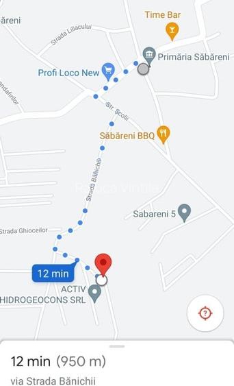 Terenul este intravilan, situat in Sabareni, la 12 min de mers pe jos de Primarie, Scoala etc.