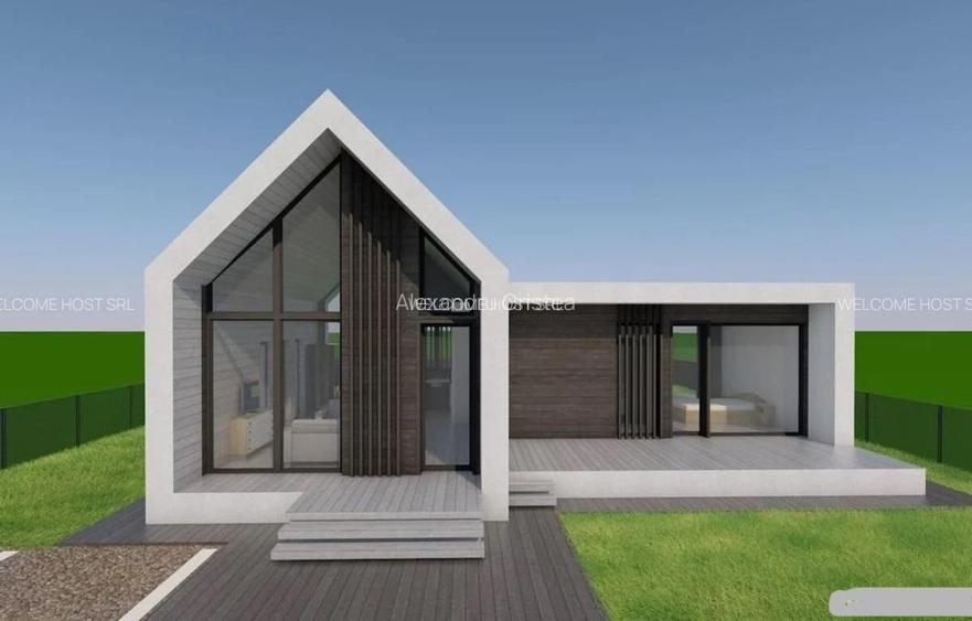 Se vand terenuri cu autorizatii de constructie emise pt 8 case in total, 4 modele diferite (vedeti in poze), cu 2 sau 3 camere, cu parter sau etaj. Proiectelel sunt moderne, estetice, prevazute pe structura de beton armat sau pe lemn, in functie de preferinta.